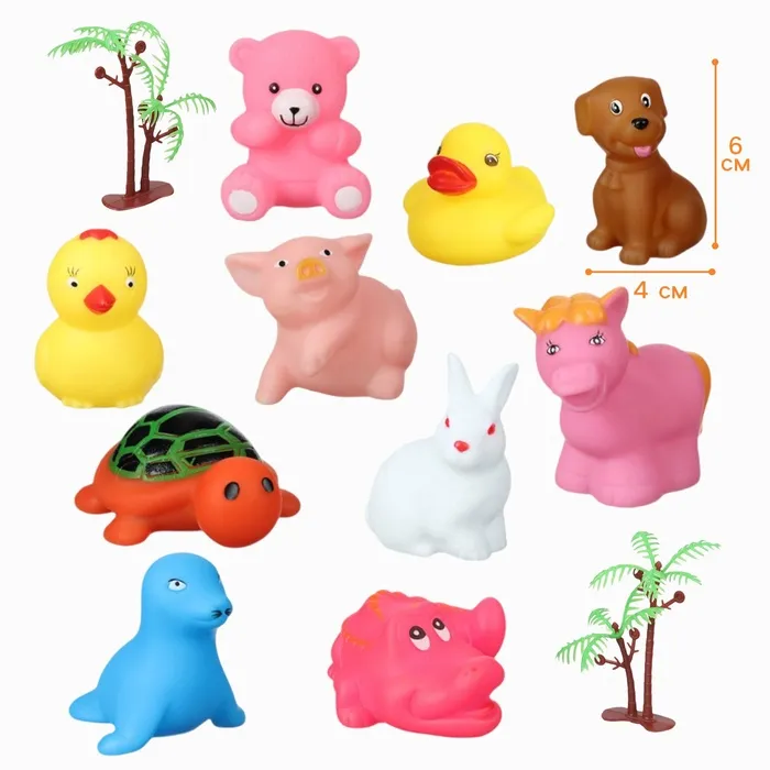 Резиновые игрушки для ванны Крошка Я «На острове», с пищалкой, в наборе 12 шт