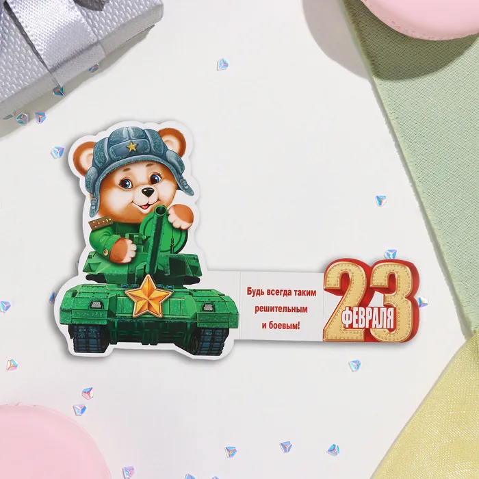 Мини-открытка «23 Февраля» глиттер, 13×13.5 см — Характеристики