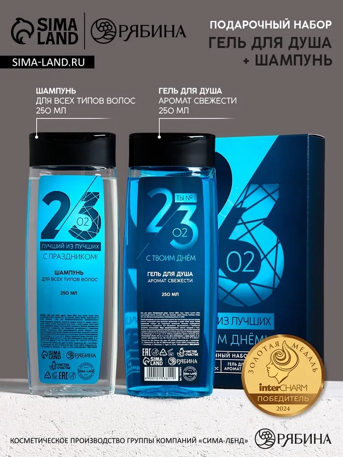 Подарочный набор «23 Февраля», гель для душа и шампунь для волос, 2×250 мл, HARD LINE
