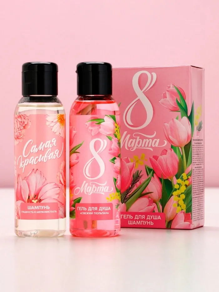 Подарочный набор «С 8 Марта!», гель для душа и шампунь для волос, 2×100 мл, Чистое счастье