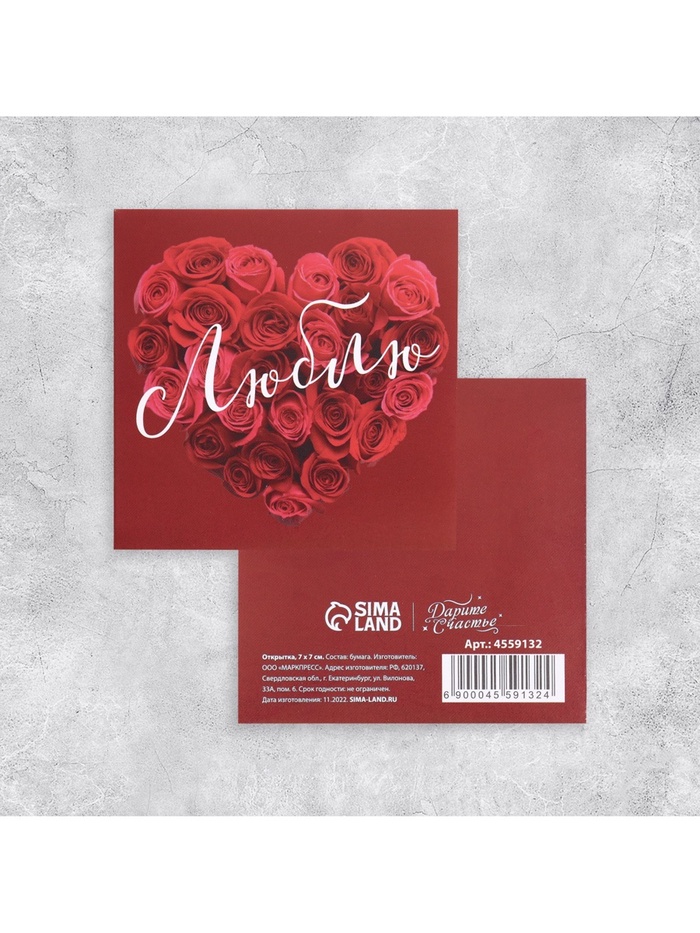 Мини-открытка «Люблю», 7×7 см — Характеристики