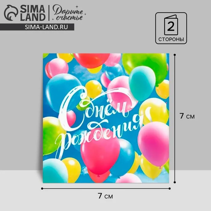 Мини–открытка «С днём рождения», шарики, 7 х 7 см — Характеристики