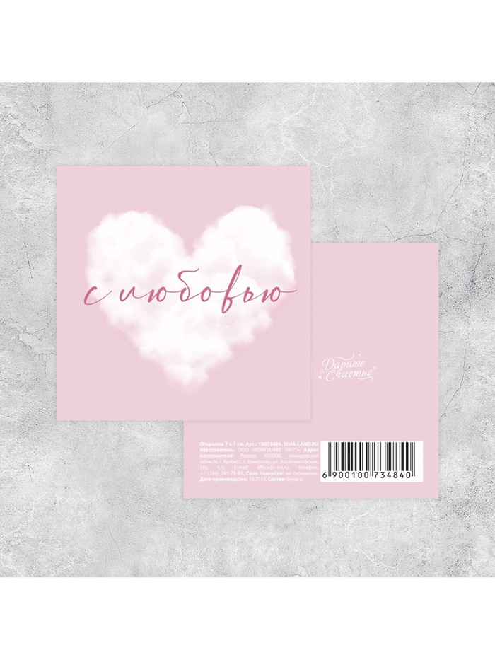 Мини-открытка «С любовью», облако, 7×7 см — Характеристики
