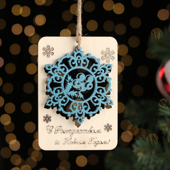 Шильдик «С Рождеством и Новым годом!» деревянный, 8.2×11.5 см