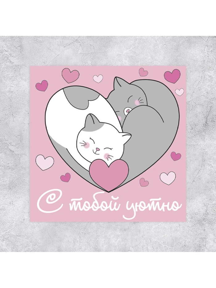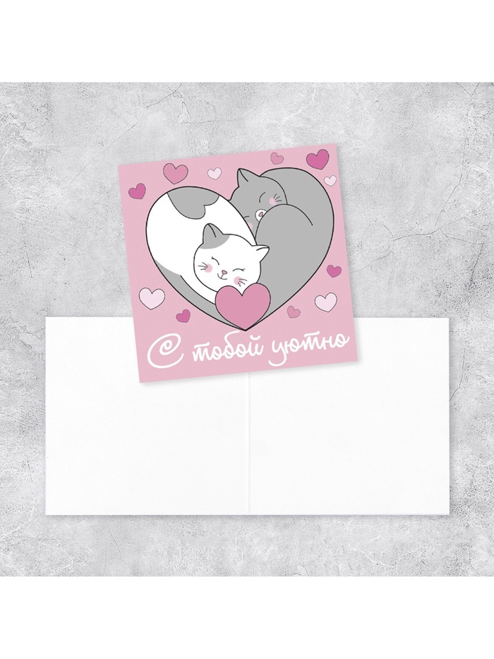 Мини-открытка «С тобой уютно», котики, 7×7 см — Характеристики