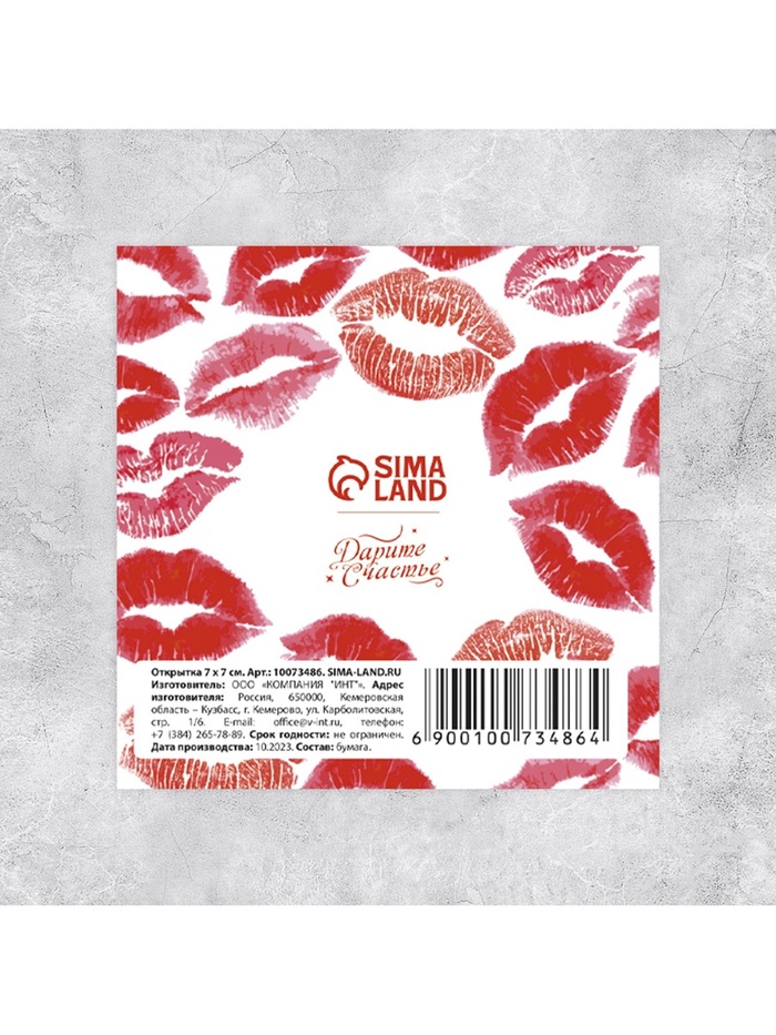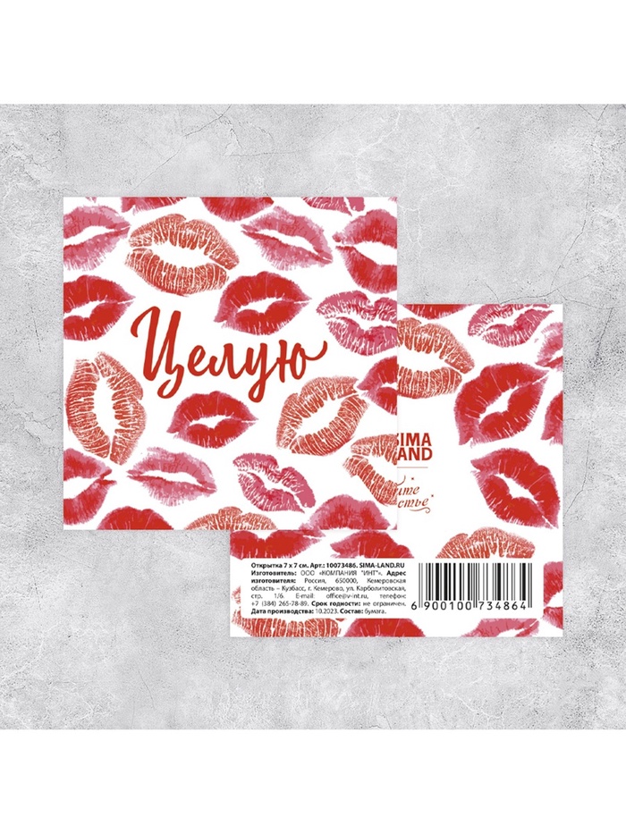 Мини-открытка «Целую», 7×7 см — Характеристики