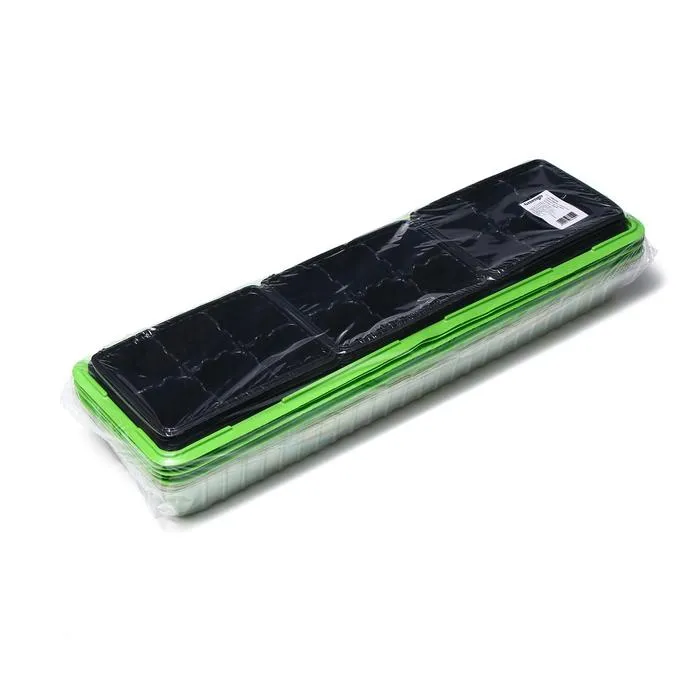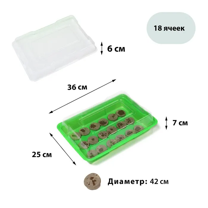 Мини-парник для рассады, 57 × 18 × 12 см, 3 вставки, 18 ячеек по 125 мл, пластик, Greengo — Характеристики