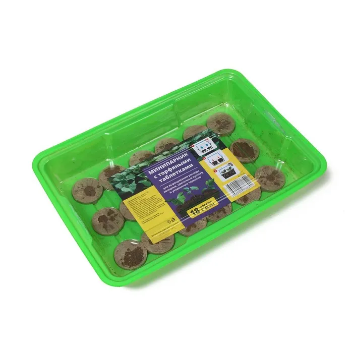 Мини-парник предназначен для более быстрого выращивания рассады. В наборе идут специальные таблетки для рассадников.