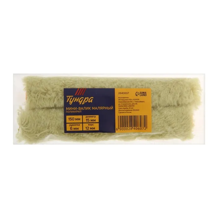Мини-ролик ТУНДРА, полиакрил, 150 мм, рукоятка d=6 мм, d=15 мм, ворс 12 мм, 2 шт. — Характеристики
