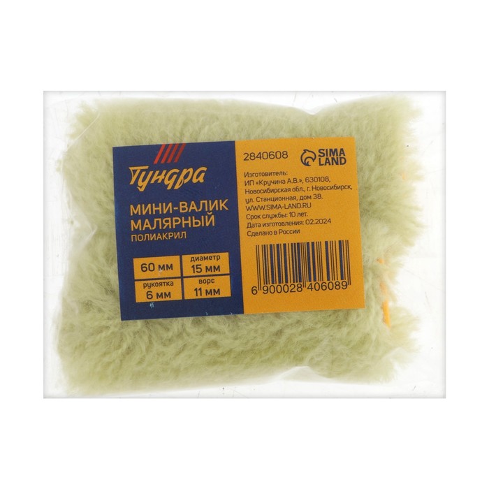 Мини-ролик ТУНДРА, полиакрил, 60 мм, рукоятка d=6 мм, d=15 мм, ворс 11 мм, 2 шт. — Характеристики