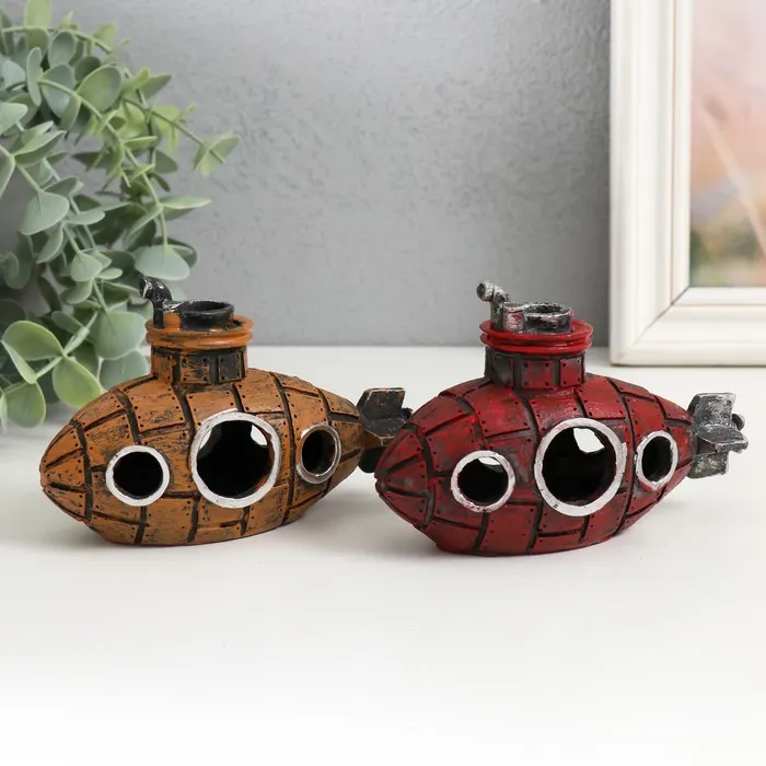 Миниатюрная фигурка для флорариума «Подводная лодка», полистоун, 14×7×9 см, МИКС — Характеристики