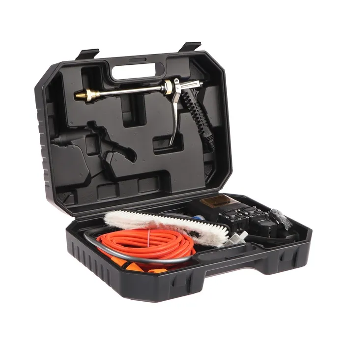 - Мобильность и удобство: благодаря питанию от 12 В, минимойку можно использовать в любом месте, подключив к прикуривателю автомобиля;