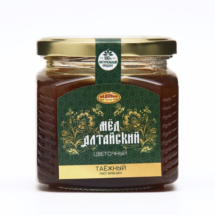Алтайский таёжный мёд- это экологически чистый, уникальный по своему составу продукт, в котором обнаружено более трёхсот биологически активных веществ и элементов. К его основным особенностям можно отнести то, что он имеет оригинальный медово-травный вкус и аромат тайги. Цвет варьируется от светло-коричневого до тёмно-коричневого. Вкус и запах весьма ароматный. В народной медицине рекомендуется применять как укрепляющее, антисептическое, противовоспалительное, успокаивающее, спазмолитическое средство.