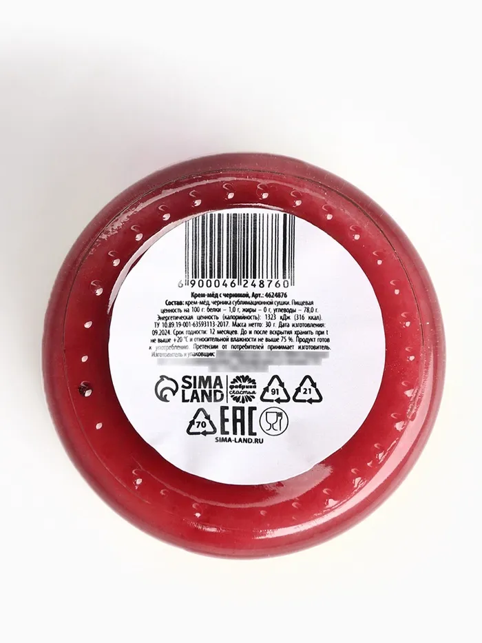 Мёд кремовый с черникой «8 Марта», 30 г — Характеристики