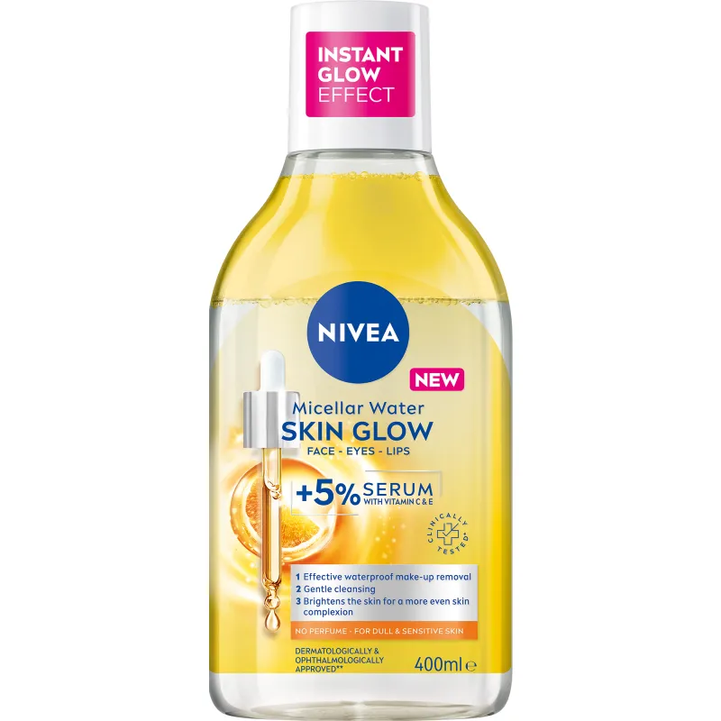 Мицеллярная вода Nivea Skin Glow содержит 5% сыворотки и комплекс аминокислот. Эффективно удаляет водостойкий макияж, загрязнения и грязь всего за несколько легких движений, не оставляя жирного ощущения на коже. Обеспечивает ультрамягкое очищение лица без необходимости тереть кожу.