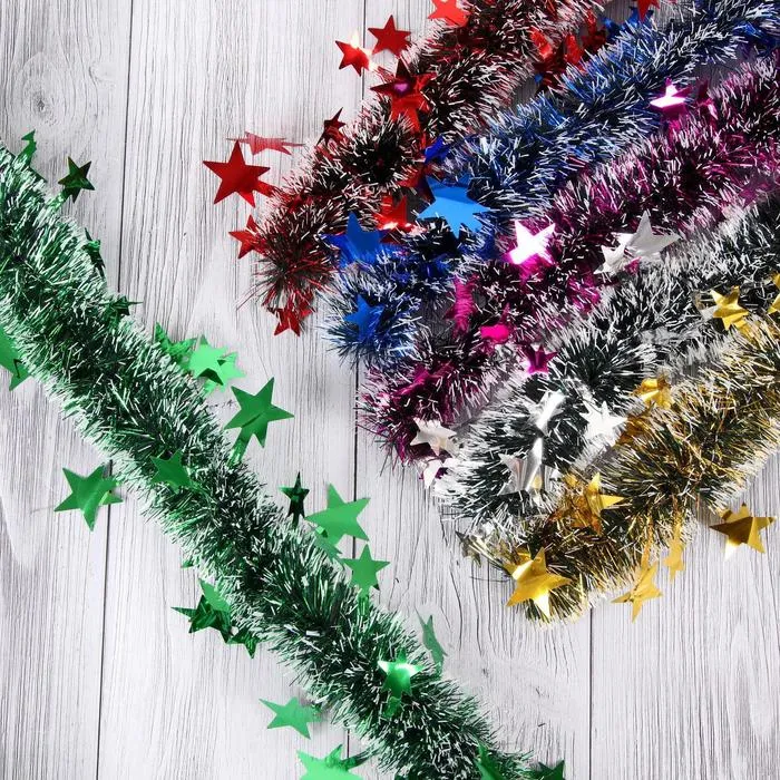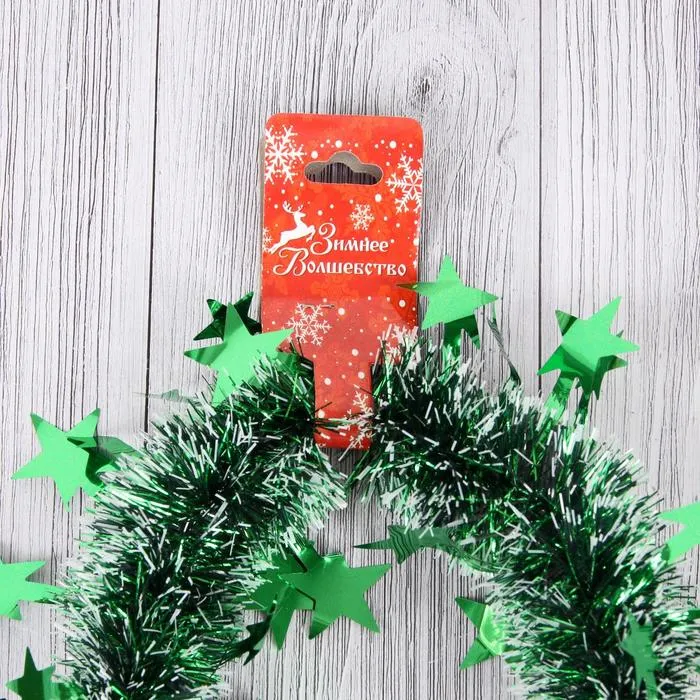 Нарядную мишуру с фигурными вставками можно использовать не только для украшения ели, сделайте из неё саму ёлочку! Просто обмотайте искристую нить вокруг картонной основы, скрученной в конус. Мишура новогодняя «Зимнее волшебство. Лавр», звезда, d = 5 см, 200 см, МИКС поможет создать яркий декор, например, выложите ей число грядущего года. Ещё искрящееся украшение послужит нарядным аксессуаром: браслетом, бусами или головным убором.