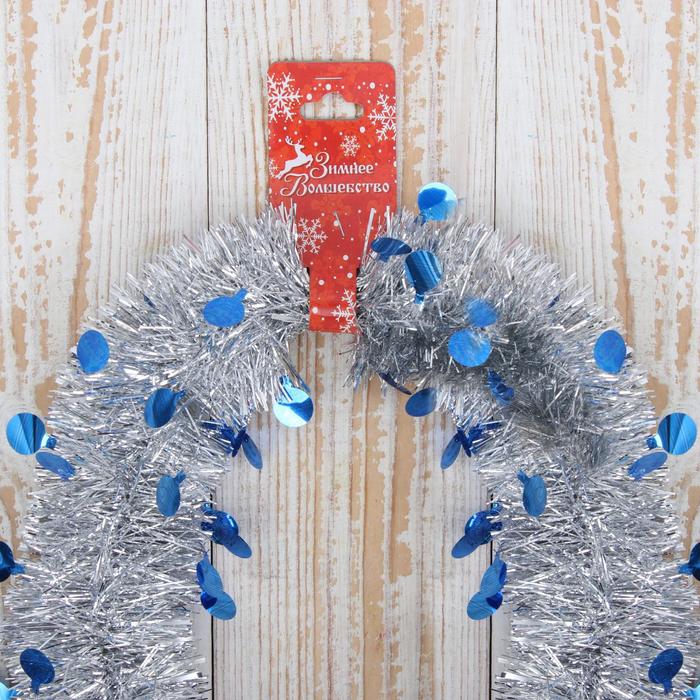 Нарядную мишуру с фигурными вставками можно использовать не только для украшения ели, сделайте из неё саму ёлочку! Просто обмотайте искристую нить вокруг картонной основы, скрученной в конус. Мишура новогодняя «Зимнее волшебство. Переплёт», кружочки, d = 5 см, 200 см, МИКС поможет создать яркий декор, например, выложите ей число грядущего года. Ещё искрящееся украшение послужит нарядным аксессуаром: браслетом, бусами или головным убором.