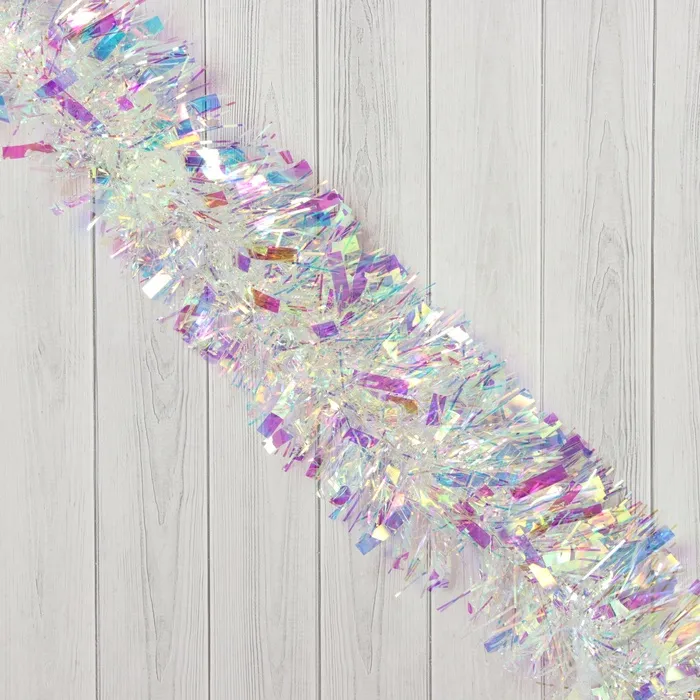Эта мишура делает ёлку и интерьер частью вашей личной зимней истории. Перламутровая текстура и чёткая форма работают вместе, чтобы создать атмосферу покоя и торжества. Используйте её как основу декора или фоновое дополнение — одинаково хорошо подчёркивает дух Нового года и тепло семейных встреч.