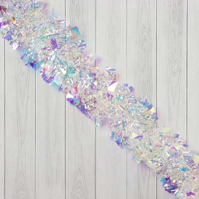 Перламутровая новогодняя мишура длиной 2 метра с прозрачными бусинами диаметром 8 см добавит в праздничный интерьер лёгкость и блеск. Её дизайн гармонирует с советским стилем и шебби-шиком, создавая атмосферу зимнего волшебства и ностальгии.
