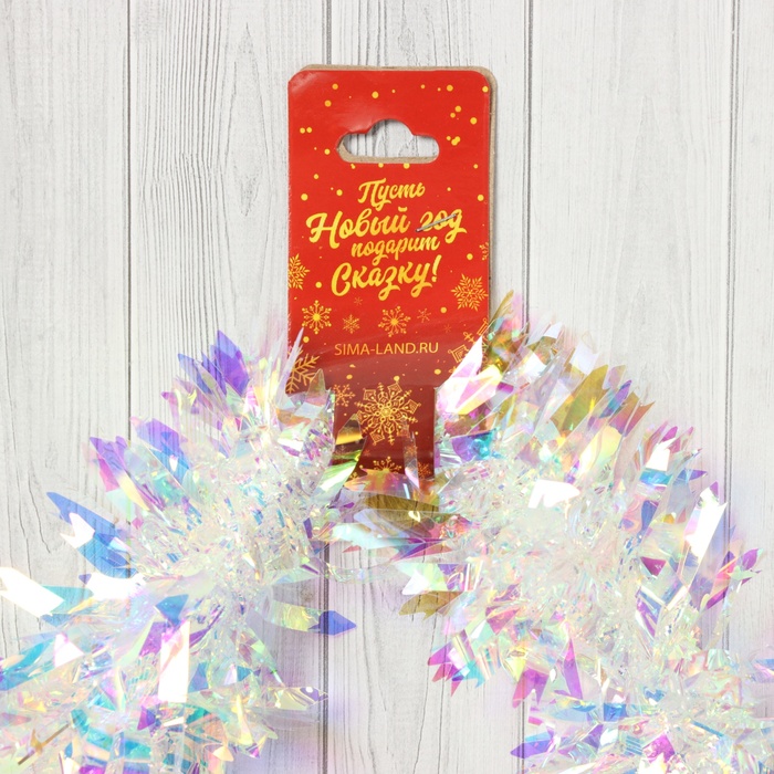 Мишура новогодняя «Зимнее волшебство. Праздничный отблеск», острые края, d=7 см, 200 см, перламутровый прозрачный
