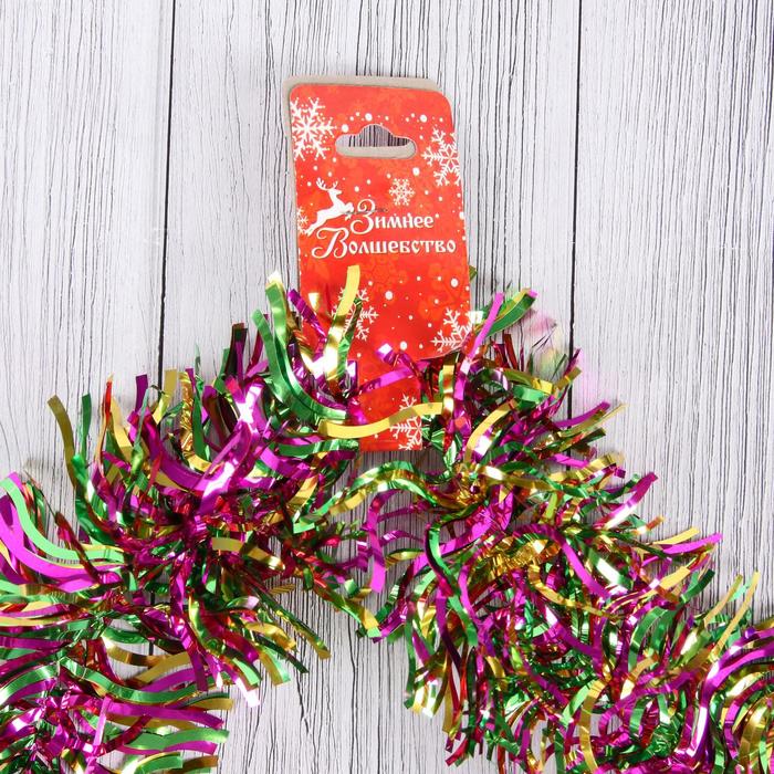 Мишура новогодняя «Зимнее волшебство. Волна цвет», d = 10 см, 200 см, МИКС поможет создать яркий декор, например, выложите ей число грядущего года. Ещё искрящееся украшение послужит нарядным аксессуаром: браслетом, бусами или головным убором.