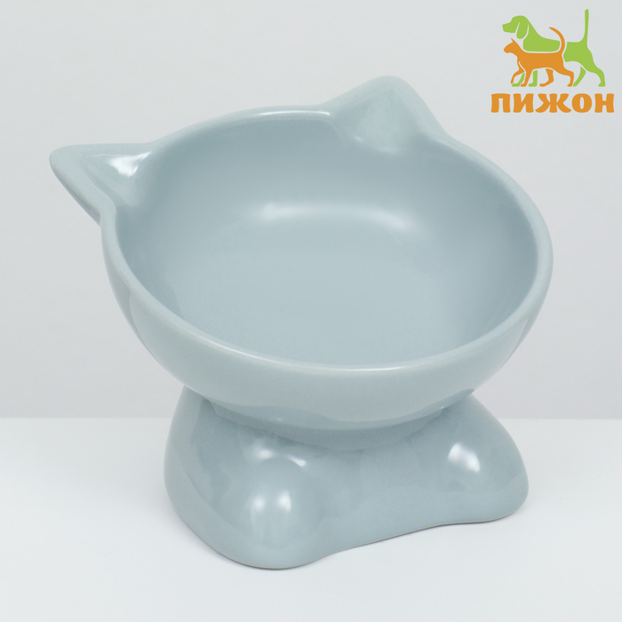 Миска для кошек керамическая Пижон "Киса" на подставке-лапках 200 мл, 13 х 12 х 8 см, серая — Характеристики
