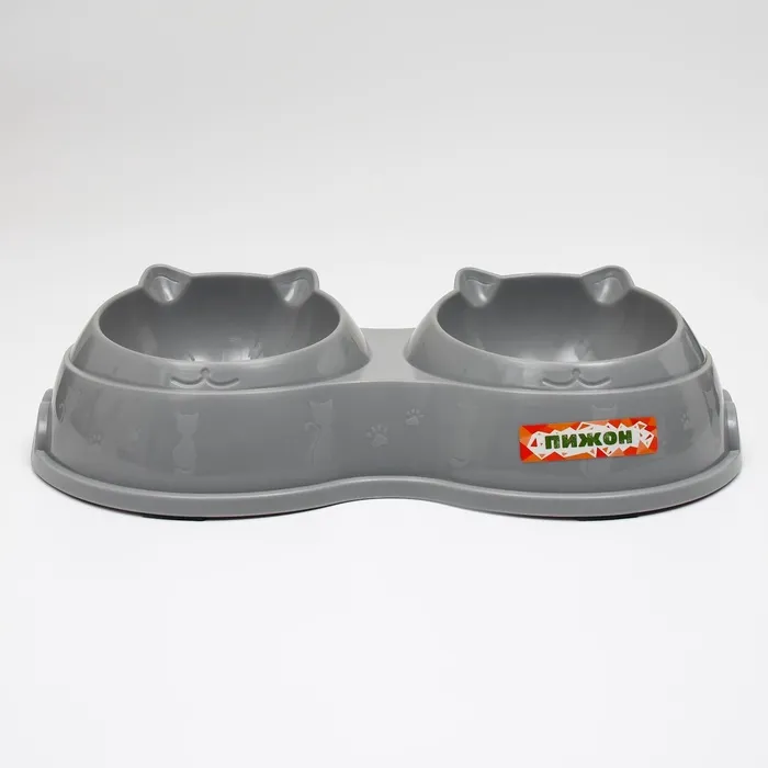 Миска для кошек двойная пластиковая, 25 х 14 х 5 см, серая – это удобное и функциональное решение для кормления вашего пушистого друга. С лёгкостью обеспечьте своему питомцу полноценное питание и доступ к свежей воде, не занимая лишнего места в вашем доме.