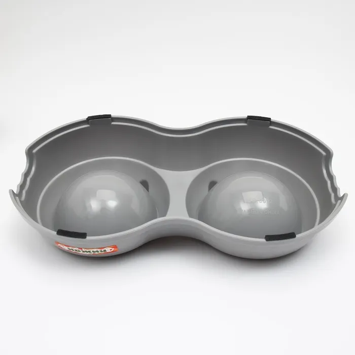 Двойная конструкция: Миска оснащена двумя отдельными отсеками, что позволяет одновременно подавать корм и воду или два разных вида корма. Это дает возможность разнообразить рацион вашего питомца.