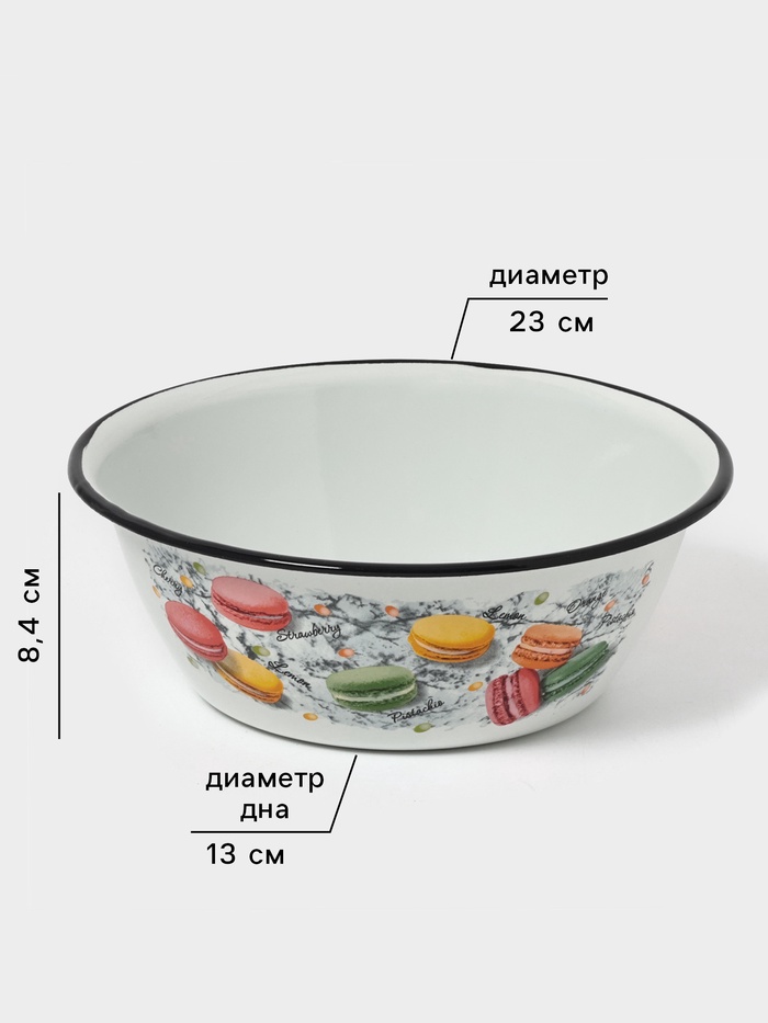 Миска эмалированная «Цветное печенье», 2 л, белая — Характеристики