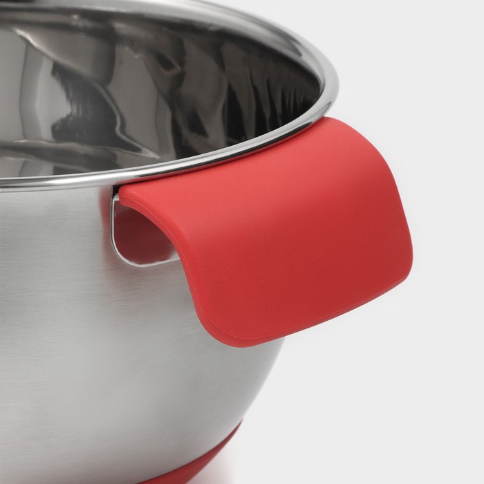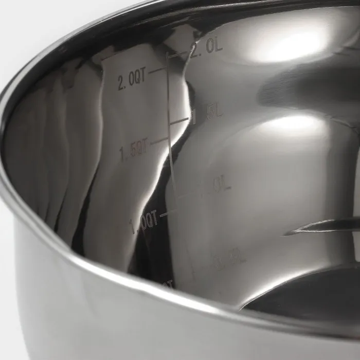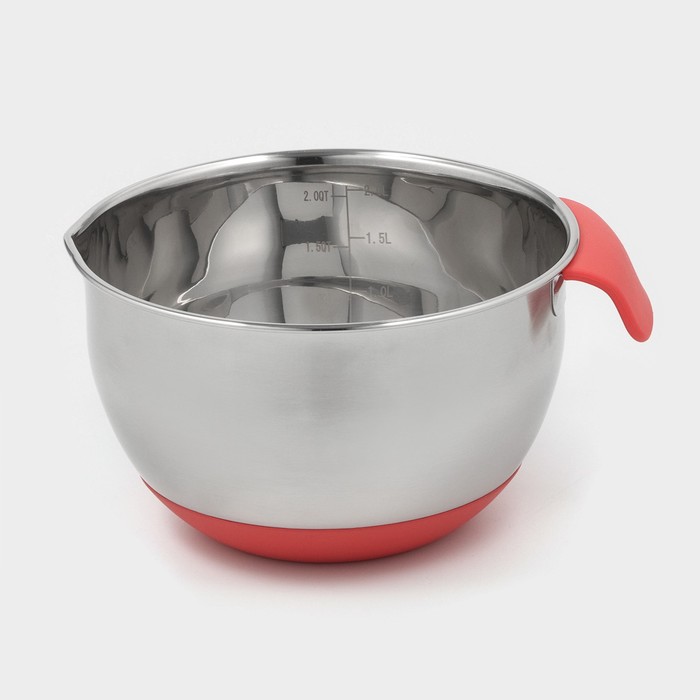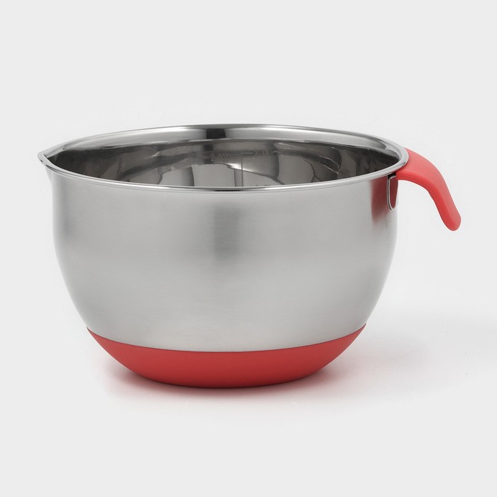 Миска из нержавеющей стали, 2 л, 22×19×11,5 см, с противоскользящим дном и мерной шкалой, силиконовая ручка — Характеристики