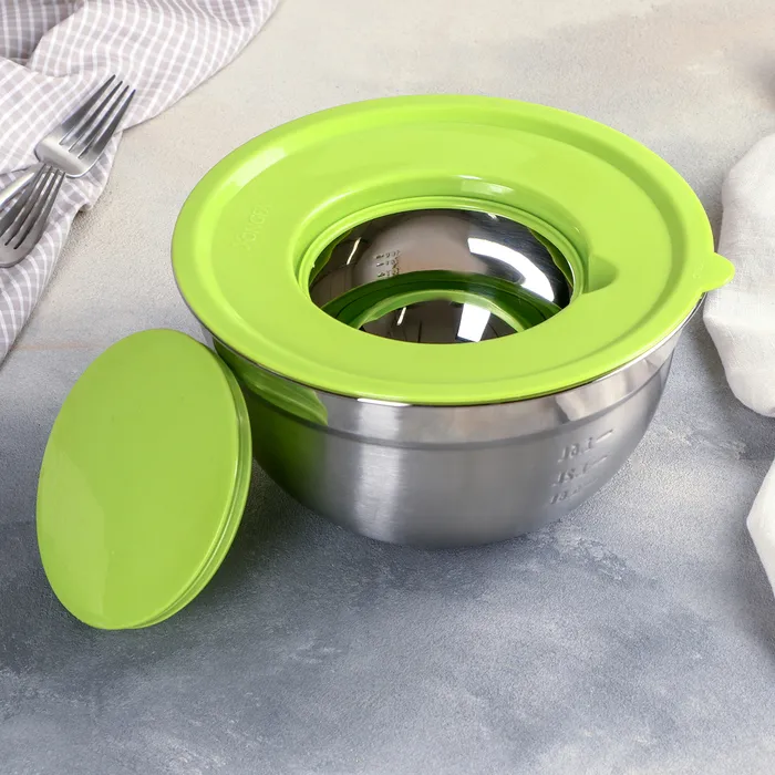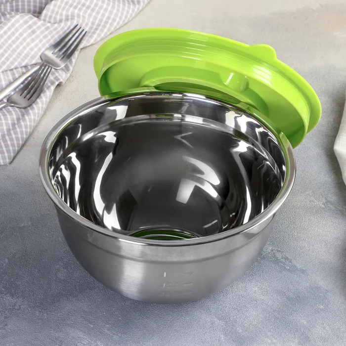 Миска из нержавеющей стали для миксера «Антибрызг», 2 л, 22×12 см, с мерной шкалой, пластиковая крышка — Характеристики