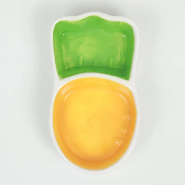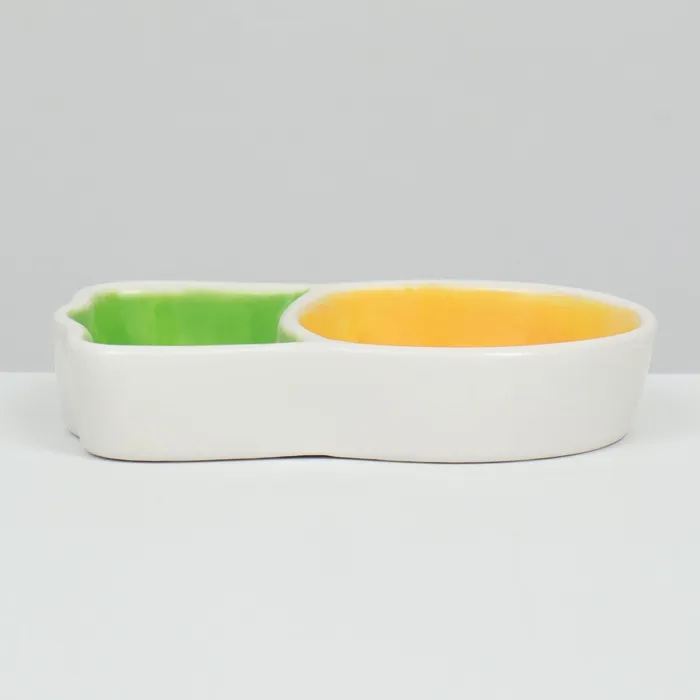 - Яркий дизайн: Миска в форме морковки с сочными цветами (белый, жёлтый, зелёный) оживляет пространство клетки и радует глаз.