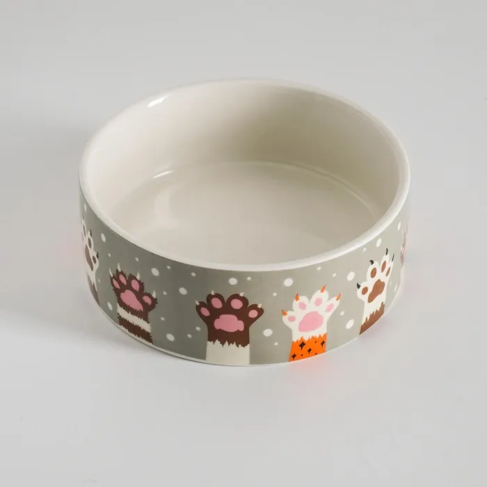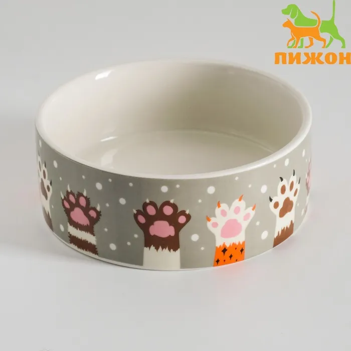 Миска керамическая "Лапы" 300мл, 11,5 х 5 см, бело-серая — Характеристики