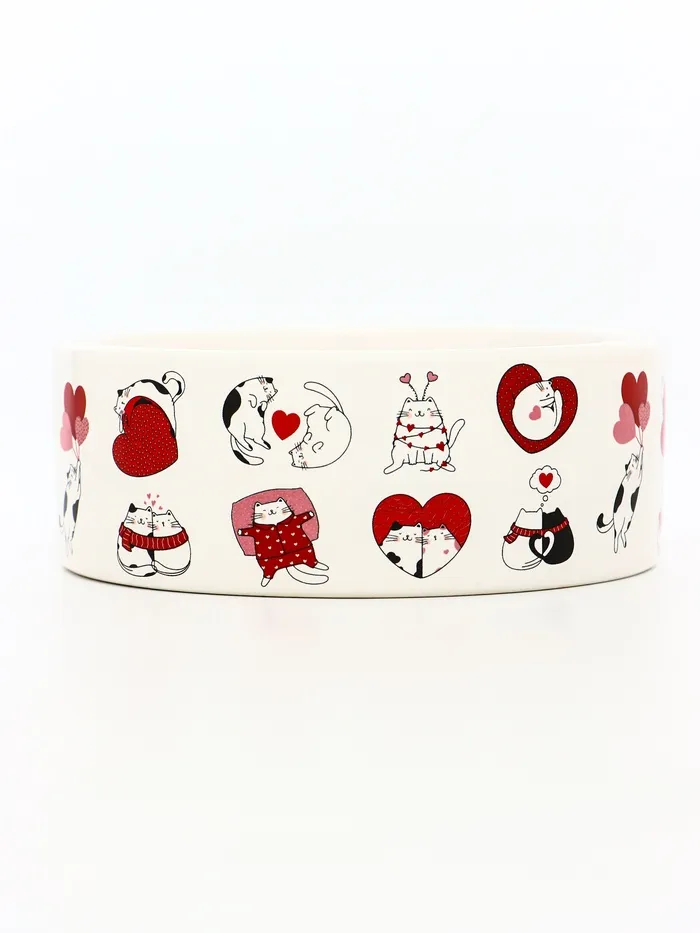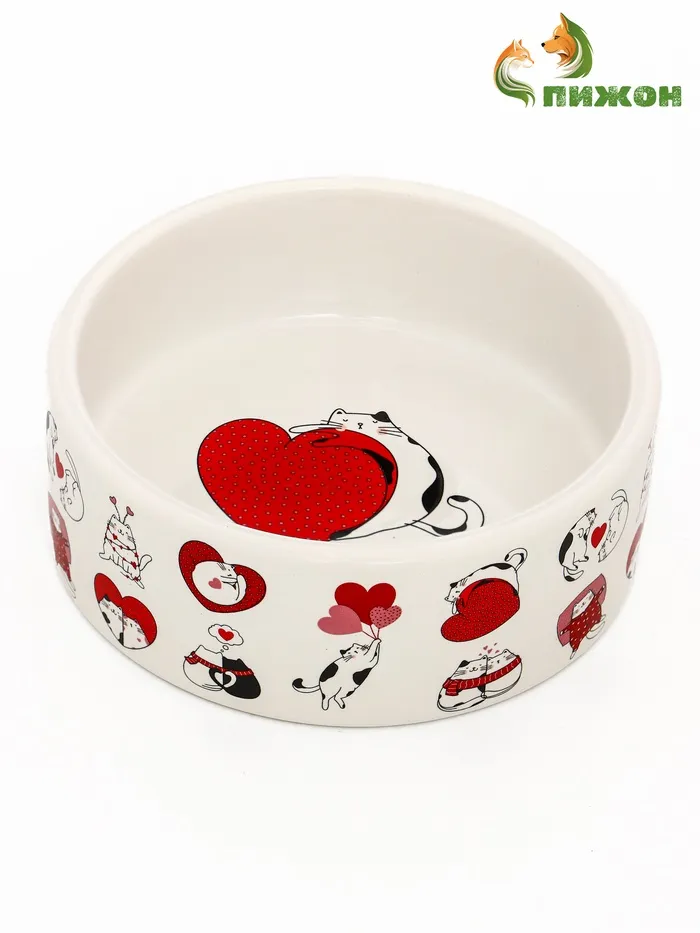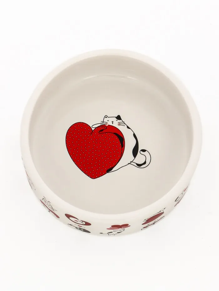 Миска керамическая "Любовь и кошки" 300 мл, 11,5 х 5 см, бело-розовая — Характеристики