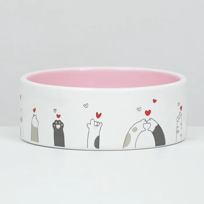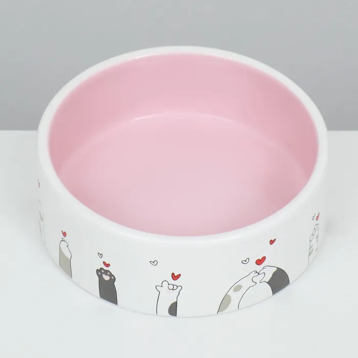 Миска керамическая "Любовь и коты"300 мл 12,5 x 4,5 cм, розово-белая — Характеристики