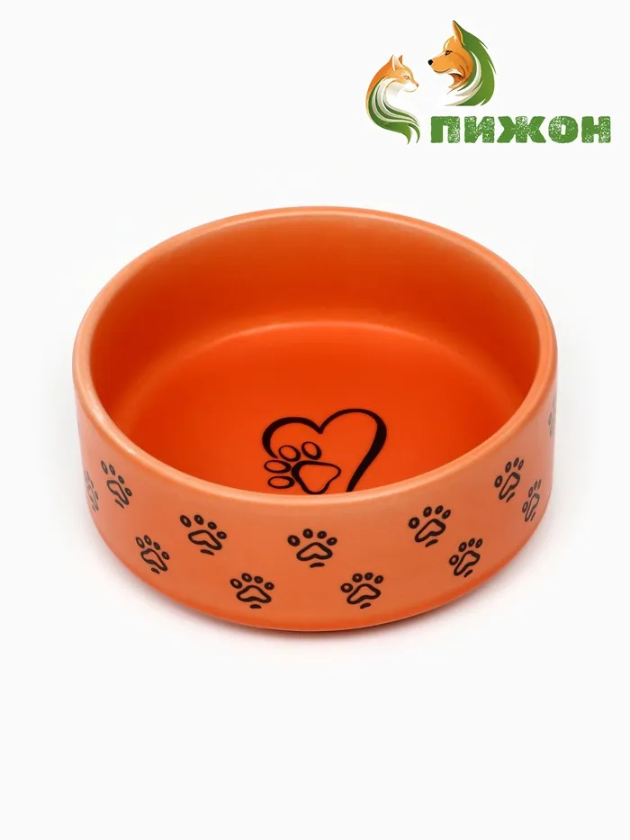 Миска керамическая матовая "Лапка с сердечком" 180 мл, 10,5 х 4 см, оранжевая — Характеристики