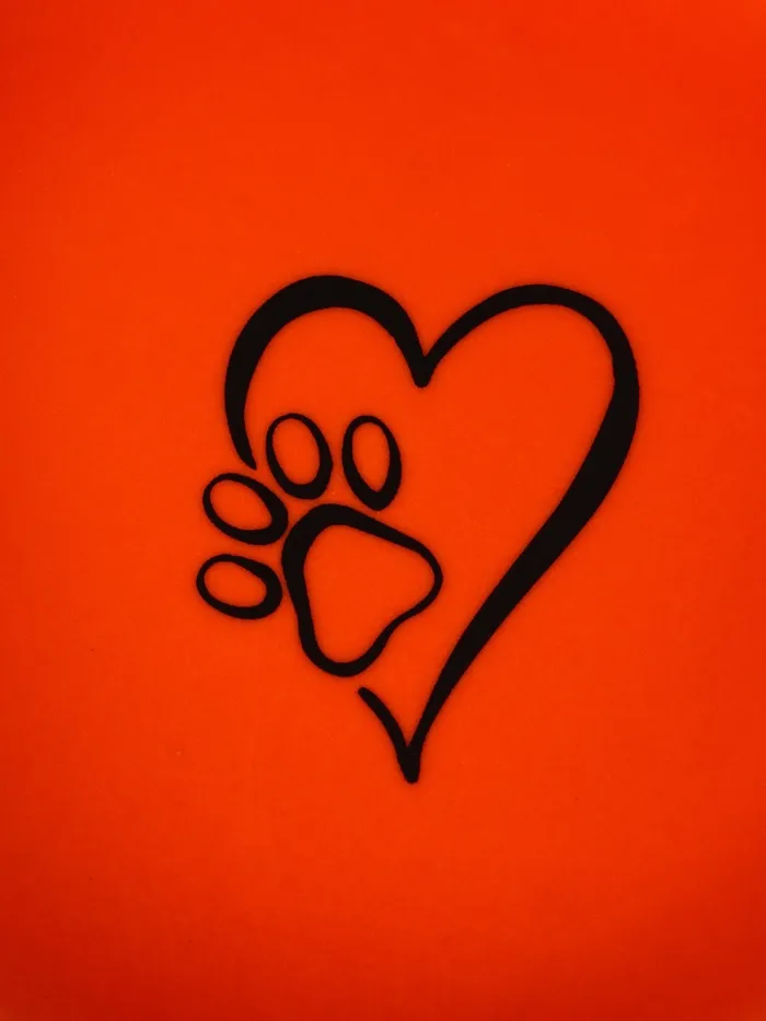 - Тематический дизайн: Рисунок «Лапка с сердечком» добавляет изделию индивидуальности. Чёрные контурные элементы на оранжевом фоне смотрятся ярко и подчёркивают связь между человеком и питомцем.