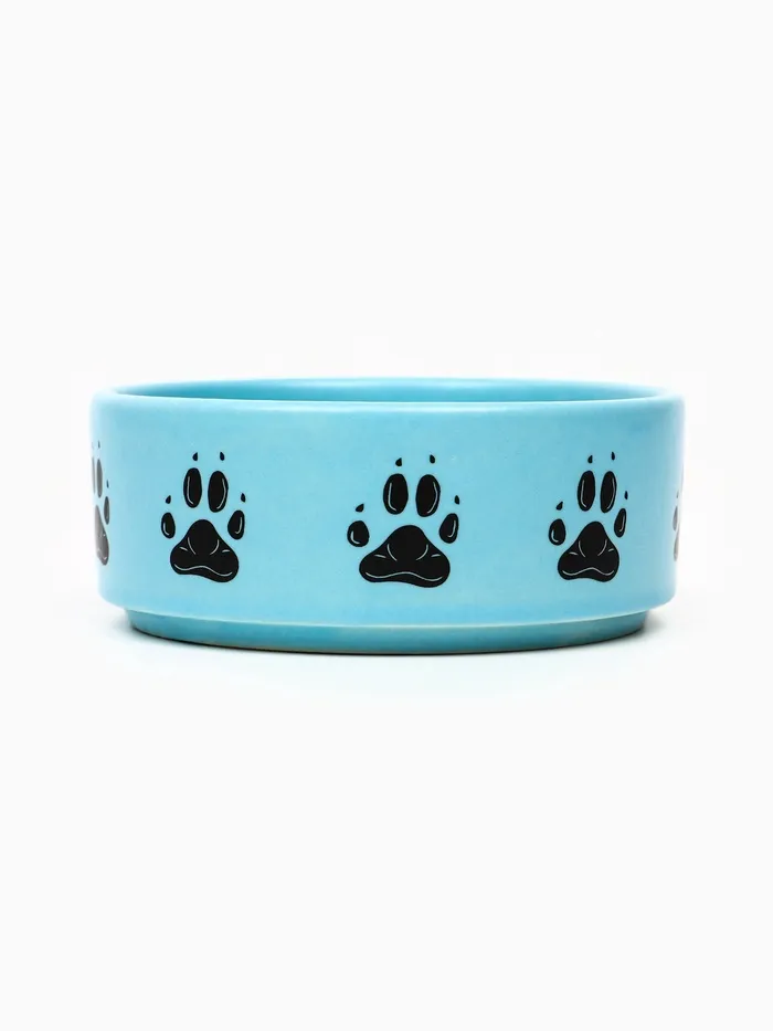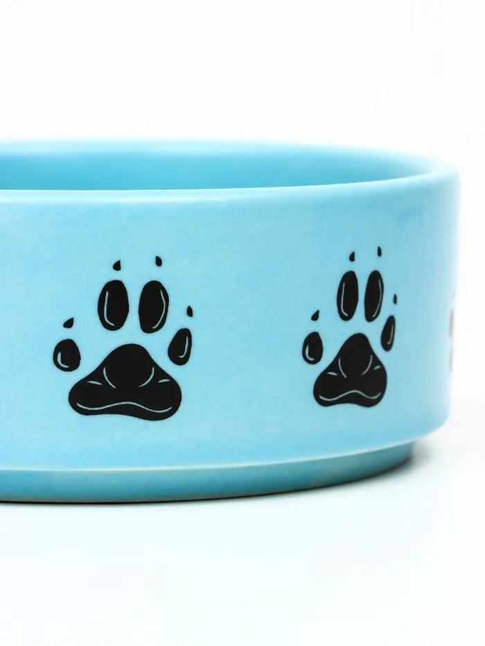 - Тематический дизайн: Рисунок «Лапки» добавляет изделию выразительности. Чёрные силуэты на голубом фоне смотрятся доброжелательно и подходят как для кошек, так и для собак.