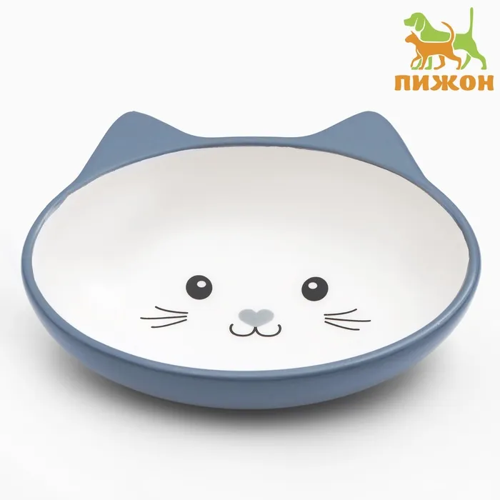 Миска керамическая овальная «Кошачья мордочка» 200 мл 14 х 12 х 3,5 см, серая/белая — Характеристики