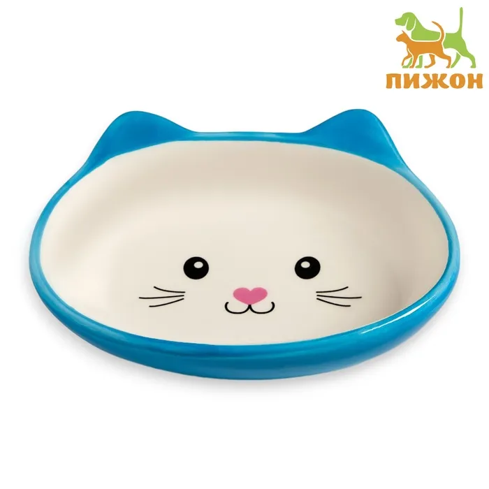 Миска керамическая овальная "Кошачья мордочка" 200 мл 14 х 12 х 3,5 см, синяя/белая — Характеристики