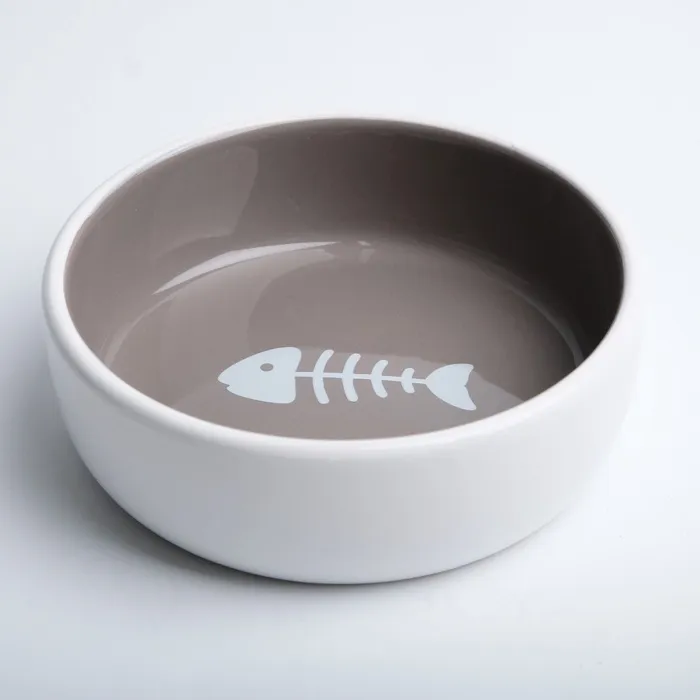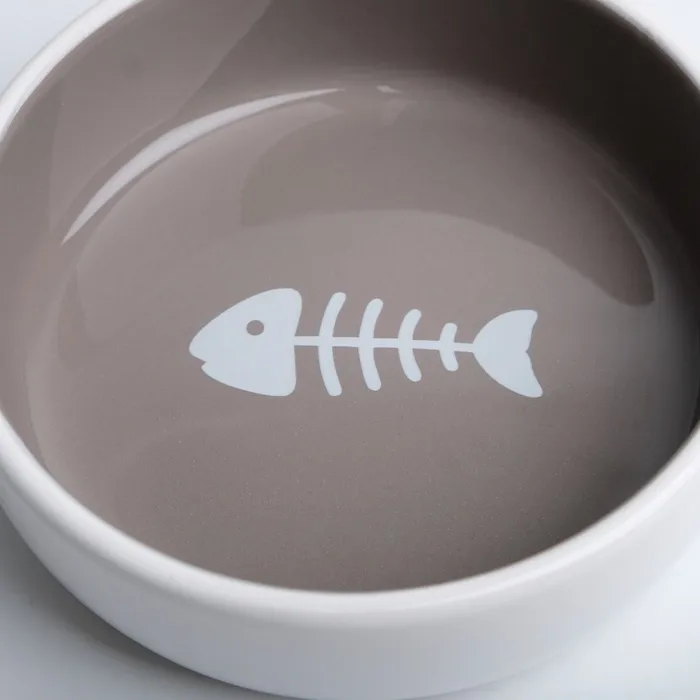 Миска керамическая "Рыбные кость" 300 мл 13,4 x 4 cм, серо-белая — Характеристики