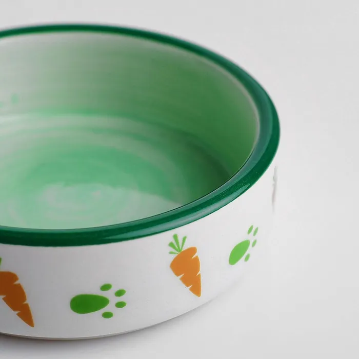 Миска керамическая с морковками 100 мл 8,8 х 8,8 х 3 см, белая/зелёная