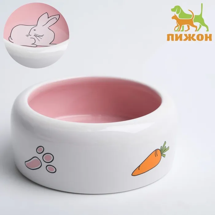 Миска керамическая "Заяц" 200 мл, 11 x 4,6 cм, белая/розовая — Характеристики