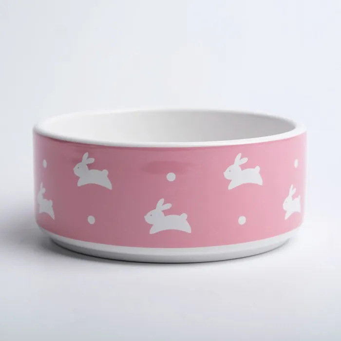Миска керамическая "Зайчики", 300 мл, 13 x 13 x 5 cм, розовая