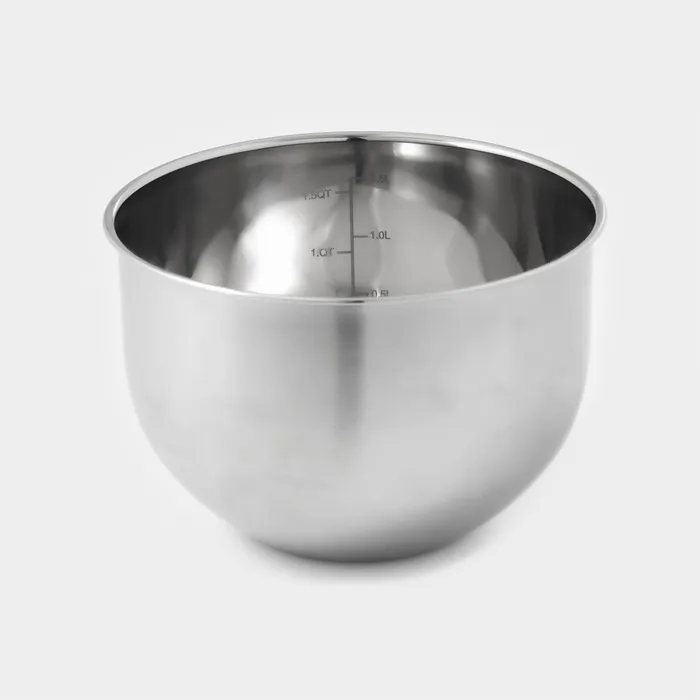 Миска из нержавеющей стали — Благодаря высококачественной стали, эта миска долговечна и устойчива к коррозии, что гарантирует долгий срок службы. Эта миска прекрасно подойдёт как для домашнего использования, так и для профессиональной кухни. Она легко моется, не впитывает запахи и не окрашивается от продуктов, что делает её идеальным выбором для любых кулинарных задач.