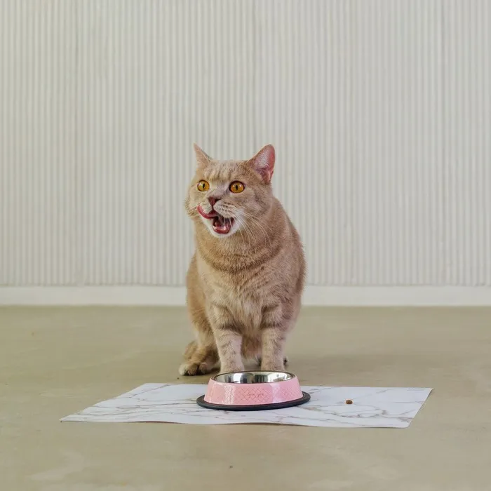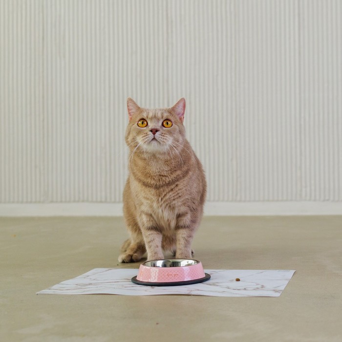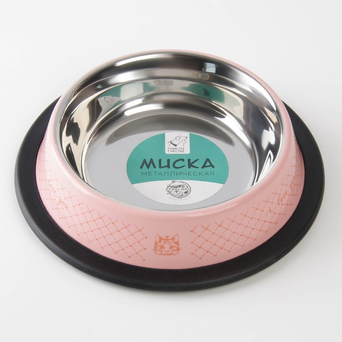 Миска для кошек сделана из нержавеющей стали, её легко мыть, она долговечна, подходит для еды и воды. Изделие имеет нескользящую резинку по окружности дна — ёмкость не будет скользить и перемещаться во время приёма пищи.