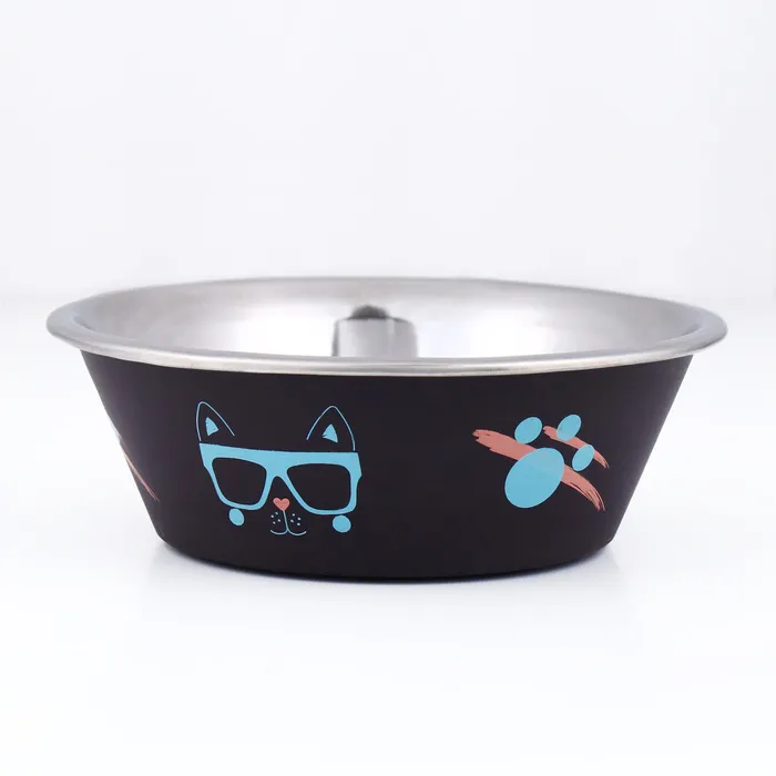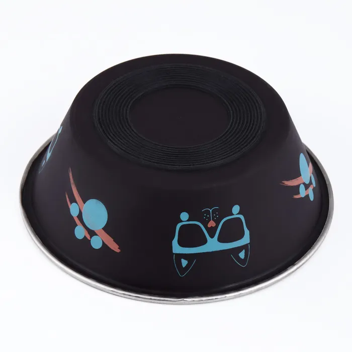 Изготовленная из высококачественной нержавеющей стали, миска гарантирует долгий срок службы и легкость в уходе. Нескользящее основание из резины предотвращает скольжение по полу, обеспечивая стабильность и удобство использования. Принт на миске добавляет эстетическую привлекательность, делая её отличным аксессуаром для вашего домашнего интерьера.
