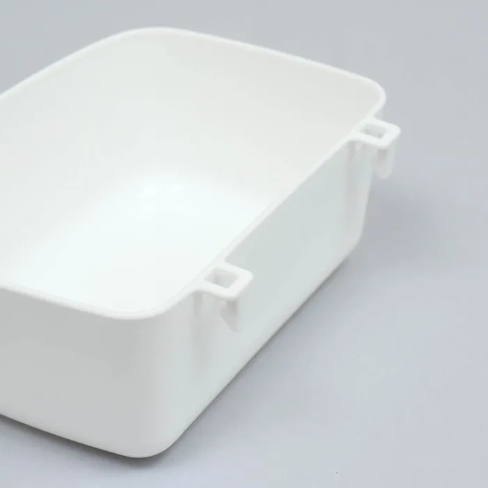 Практичность в каждой детали! Пластиковая прямоугольная миска с креплением — удобное и надёжное решение для питания питомца в клетке или переноске. Компактный объём, устойчивая форма и специальные фиксаторы делают её идеально подходящей для ежедневного использования.