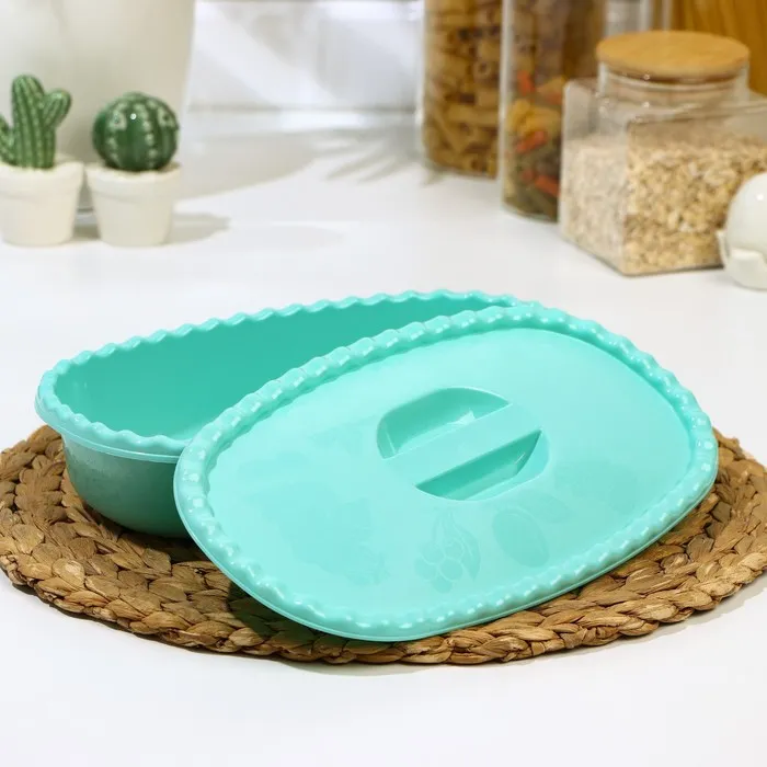Миска с крышкой IDEA, 1.5 л, 16.5×28×6.5 см, пластик, голубой — Характеристики