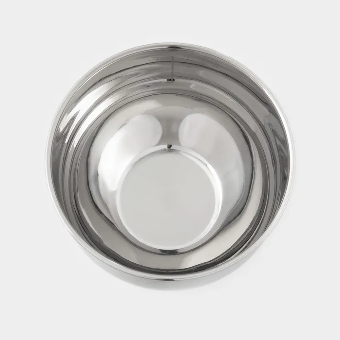 Миска выполнена из нержавеющей стали и оснащена мерной шкалой, что делает её незаменимой для точного контроля объёмов ингредиентов. Хромированный цвет и гладкая текстура придают ей современный и элегантный вид, который гармонично впишется в любой интерьер.
